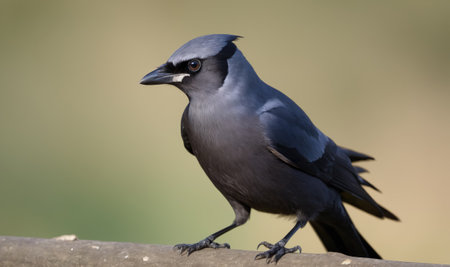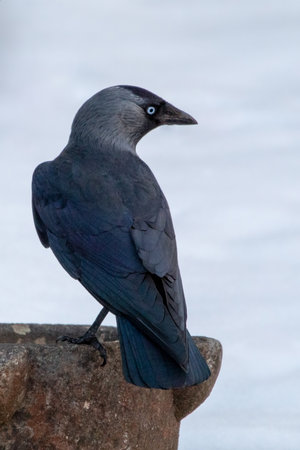 Portrait of a jackdaw. a jackdaw is sitting on a wall