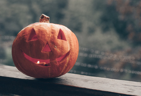 Traditional american Halloween Jack-o'-lantern, carved pumpkin with a scary grinning face