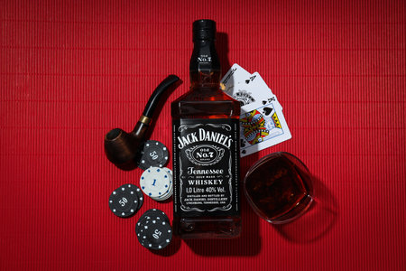Odessa, Ukraine, 03.11.2022: Concept of alcohol drink - Jack Daniels, top view
