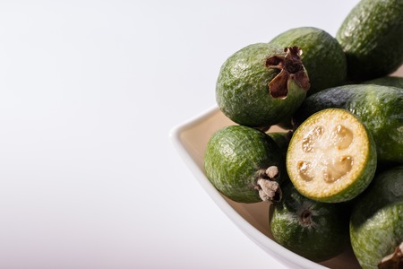 fresh fruits of the Feijoa on a white background.