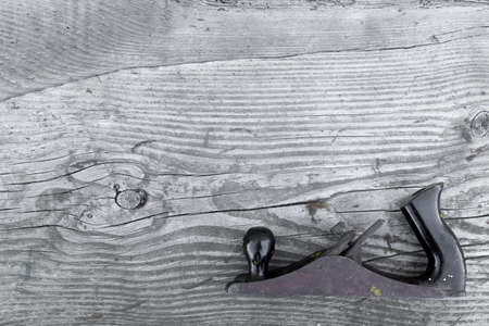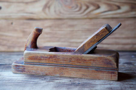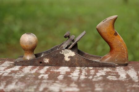 Old glider in the carpentry workshop on the table. Retro tool in use for over 20 years
