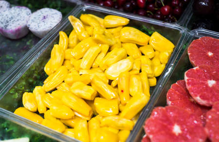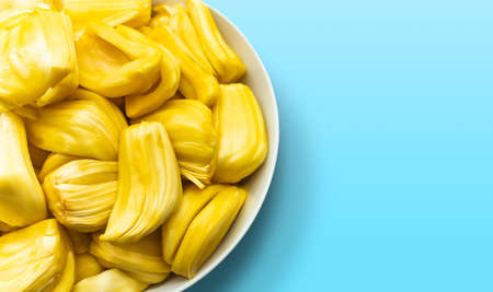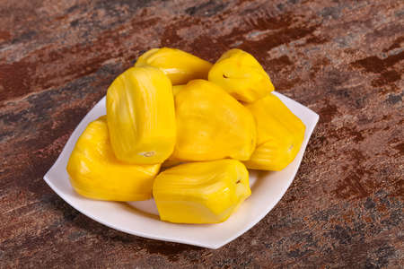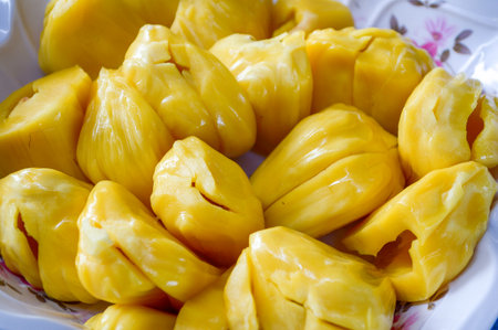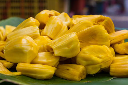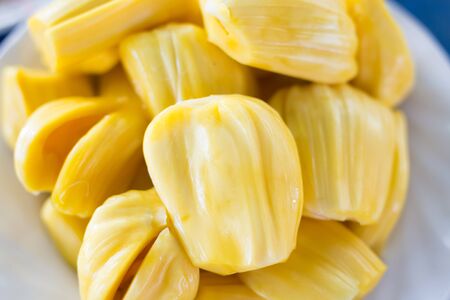 Fresh yellow ripe jackfruit slices sweet delicious. Exotic tropical fruit