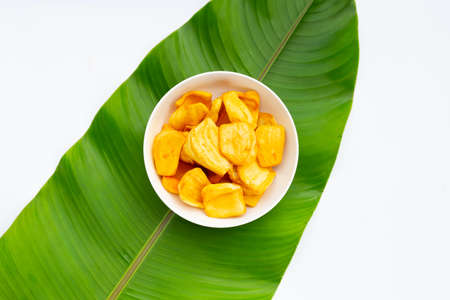 Jackfruit chips on green leaf