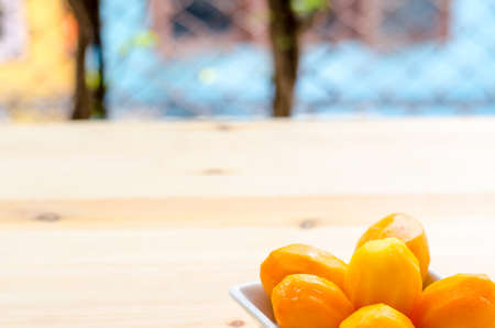 Sweet Marian plum, thai fruit isolated on wooden background, Sweet fruit of Thailand