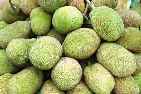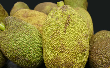 close up on tropical fruits jackfruits in pile