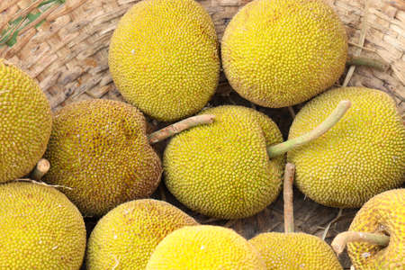 Big jack fruit on the rattan background