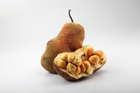 Jackfruit, ripe fruit, sweet white background.