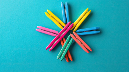 A creative arrangement of colorful clothespins in a star shape against a blue background, perfect for adding a fun touch to any project or decor.