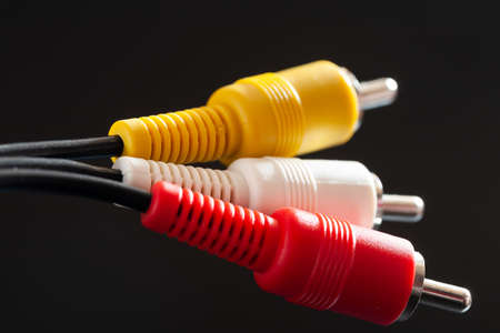 Close up of red, white and yellow RCA cables
