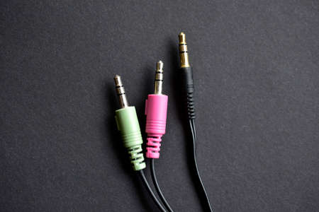 Various colored sound cables connected.Music and sound equipment concept