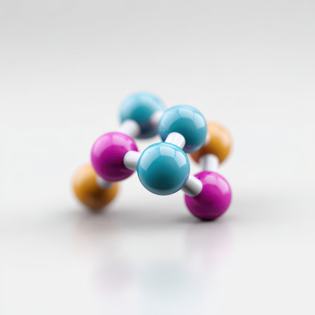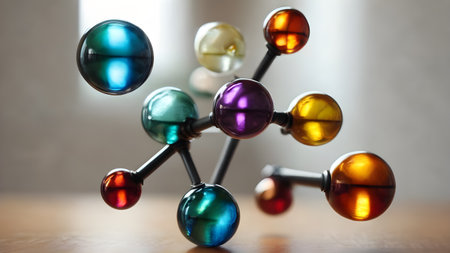 This image features a colorful molecular structure with spheres and connections, symbolizing the intricate world of chemistry and scientific discovery. Perfect for educational materials.
