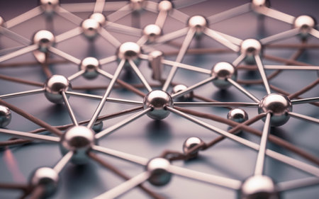 A detailed view of multiple metal balls and chains arranged closely together, Graphene, one atom thick, under a powerful microscale lens, AI Generated