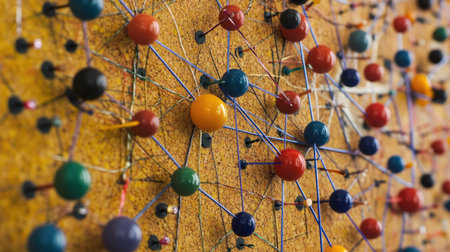 network concept, pins on table linked by threads, create connections. beautiful Generative AI AIG32