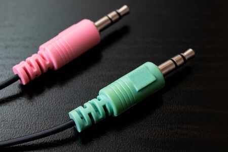 Closeup of a stereo audio connectors plug