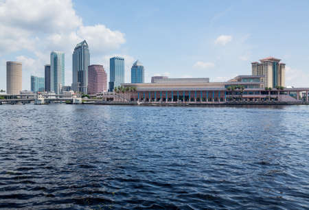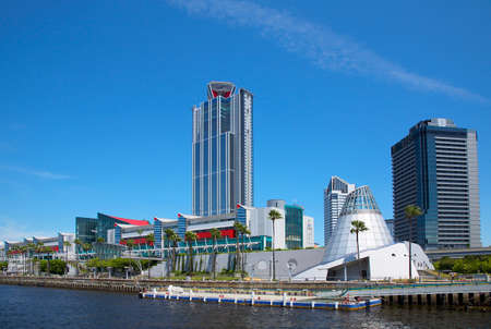 Florida skyline at Tampa with the Convention Center on the riverbank. Taken in summer during the day