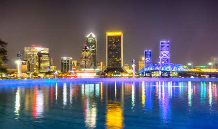 JACKSONVILLE, FL - FEBRUARY 15, 2016: City lights at night. Jacksonville is a famous destination in Florida.