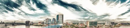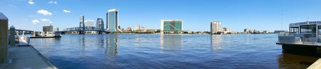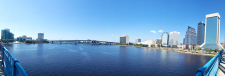 Cityscape of Jacksonville, Florida. Downtown bridge and waterfront. Panoramic shot.