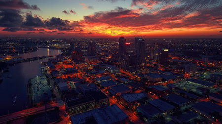 Panoramic aerial view of Jacksonville at sunset, Florida.