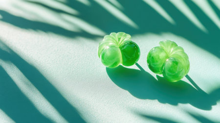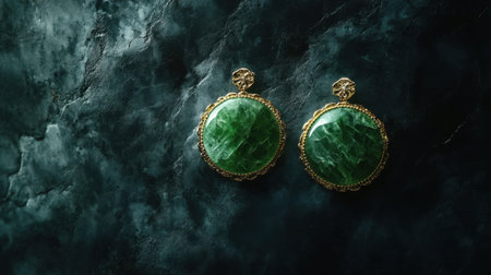 Two exquisite green jade stones rest elegantly on a textured gray stone surface, symbolizing nature's beauty and tranquility in a minimalist setting.