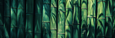 Green bamboo wall texture with natural light patterns for nature-inspired design