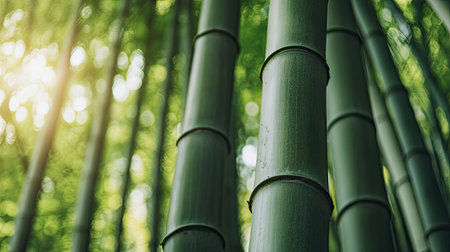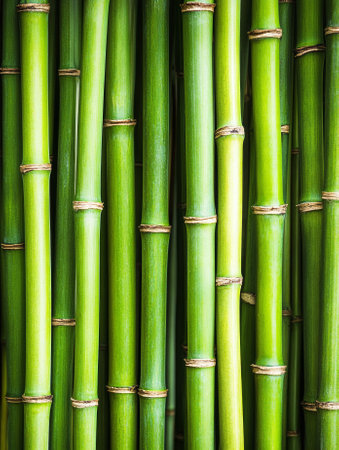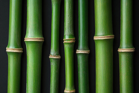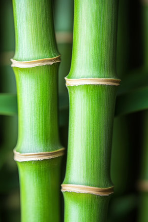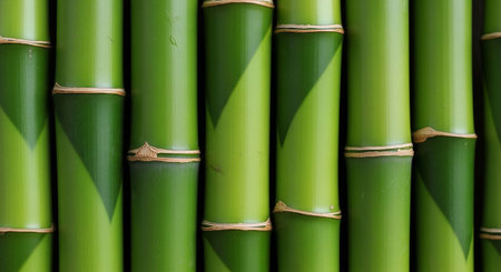 A closeup image of vibrant green bamboo stalks, showcasing their natural beauty and unique, intricate texture