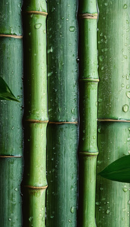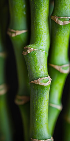 Green Bamboo Stalks, Texture, And Water Droplets A Close-Up of Nature s Abstract Design.
