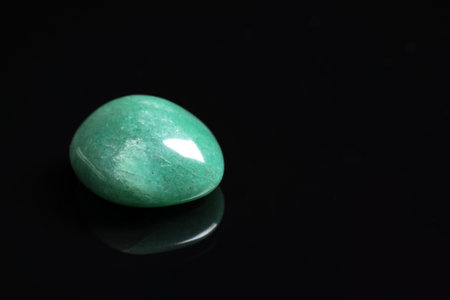 Beautiful aventurine gemstone on black background. Space for text