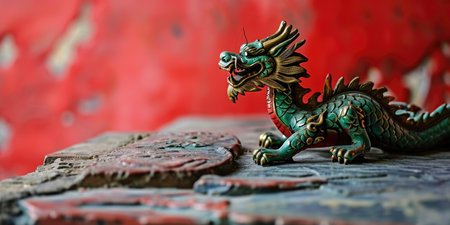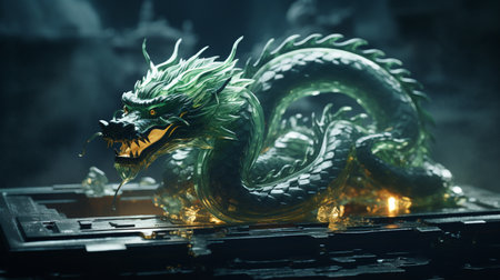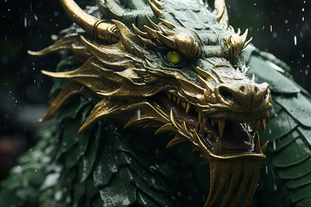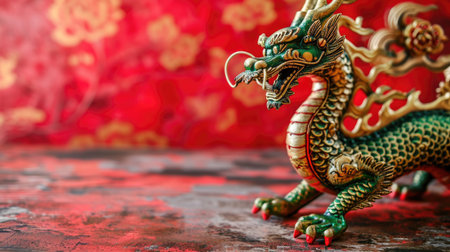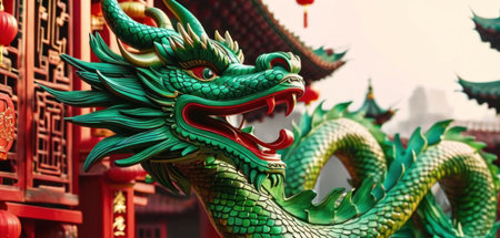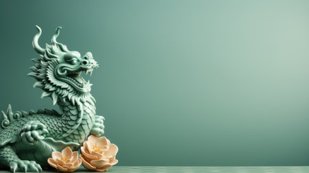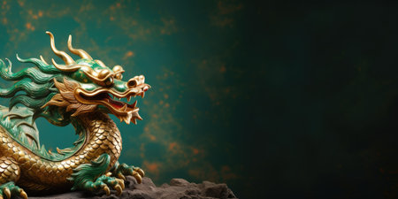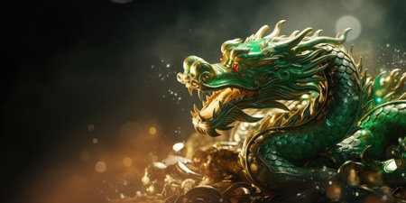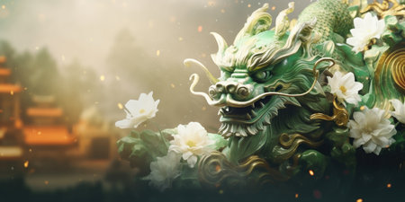 Green dragon symbol of Chinese new year, tatsu, Eastern mythology, strength, wisdom and good luck. imperial authority and celestial energy culture and folklore zodiac sign banner poster copy space