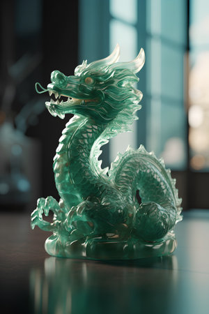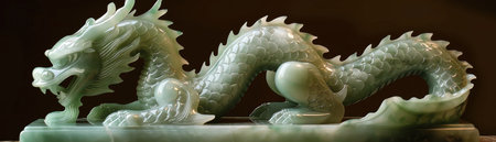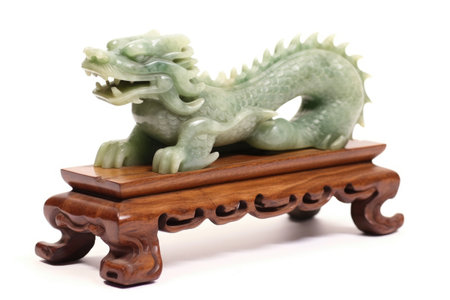 intricate jade dragon on wooden stand, created with generative ai