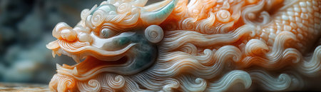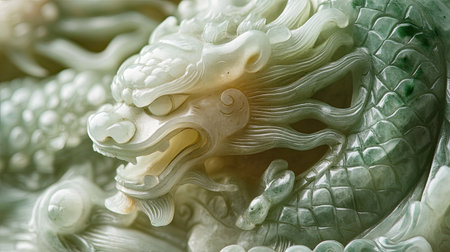 macro shot of carved jade dragon and phoenix, created with generative ai
