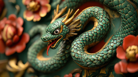 Beautifully crafted green snake with gold details and red tongue, marking the 2025 Chinese zodiac.