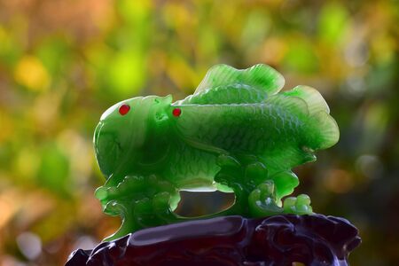 Jade carving of two beautiful fishes On a natural background