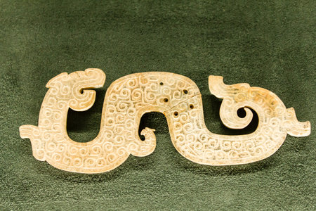 A close-up of a Chinese jade carving with intricate details. No people, copy space.
