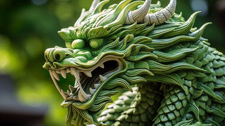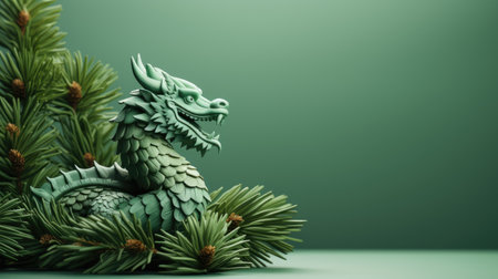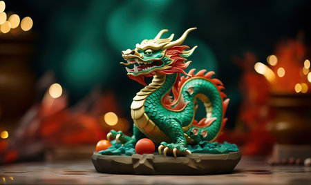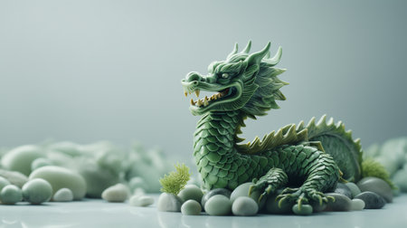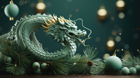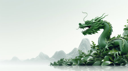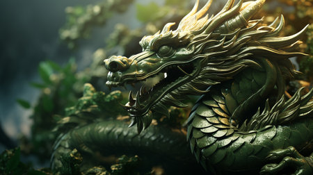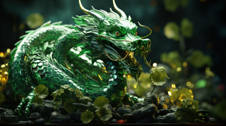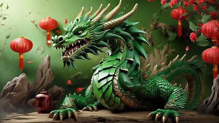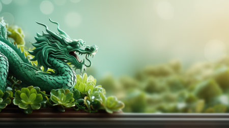Tranquil Green wooden dragon. 2024 symbol happy new year. Generate AI