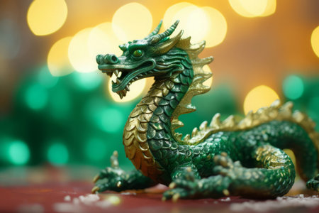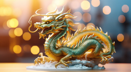 traditional dragon on a white table with a background of bokeh.
