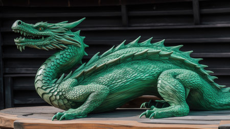Green Wooden Dragon. Generative AI.