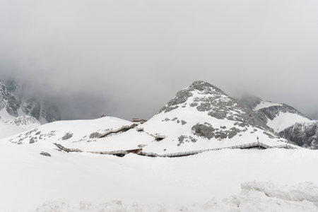 Landscape view of Jade Dragon Snow Mountain Peak. It is famous place in China for travel.
