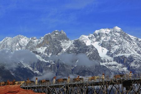 Caravan across Jade Dragon snow mountain Shangri-La, China
