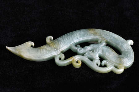A close-up of a Chinese jade carving with intricate details. No people, copy space.
