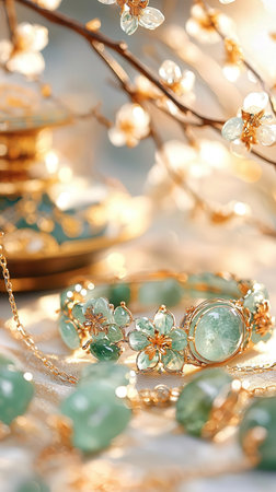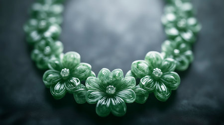 A stunning jade bangle adorned with intricate floral patterns This luxurious piece of jewelry embodies nature-inspired elegance with its exquisite design and high-quality craftsmanship The perfect gift for nature lovers and jewelry enthusiasts seeking a timeless and beautiful statement piece AI Generative