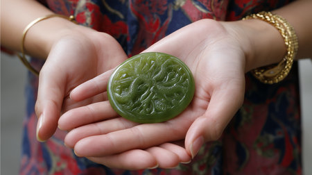 AI Generated. Polished Jade A Cultural Artifact Radiating Asian Heritage and Elegance