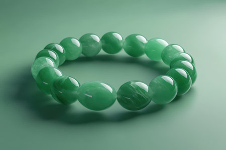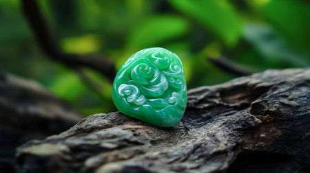 A stunning jade bangle featuring intricate designs, showcasing exquisite craftsmanship The rich green hue and elaborate details create a timeless and elegant look, making it a perfect fashion statement for any occasion This bangle is a testament to the artistry of jade jewelry AI Generative
