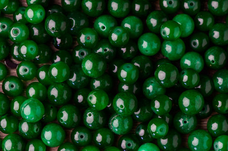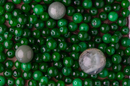 green balls of real stone for making amulets as a background