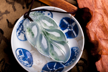 Necklace with a jade pendant on a bamboo mat, highlighting traditional Asian craftsmanship and materials