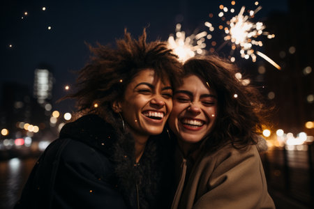 A Heartwarming Snapshot of Best Friends Embracing and Laughing Together as They Celebrate the Arrival of the New Year