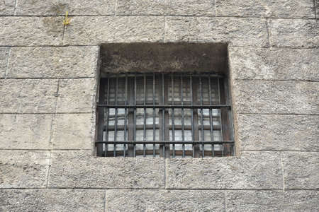 Old prison with bars locked up, Prisoner steel cage, Prison cell with jail iron bars for criminals
