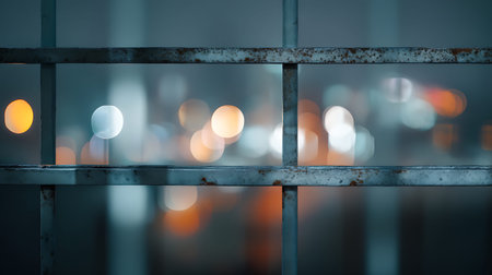 A captivating close-up shot of prison bars set against a dark, moody backdrop. The interplay of shadows and light highlights the stark reality of confinement and isolation.