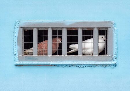 Pigeons sitting in captivity
