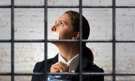 Slave girl in cage. Imprisonment, Female prisoner, Women violence and abused concept, human trafficking Concept, international women's day.