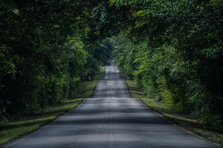 Scenic Road View of National Park in Thailand.